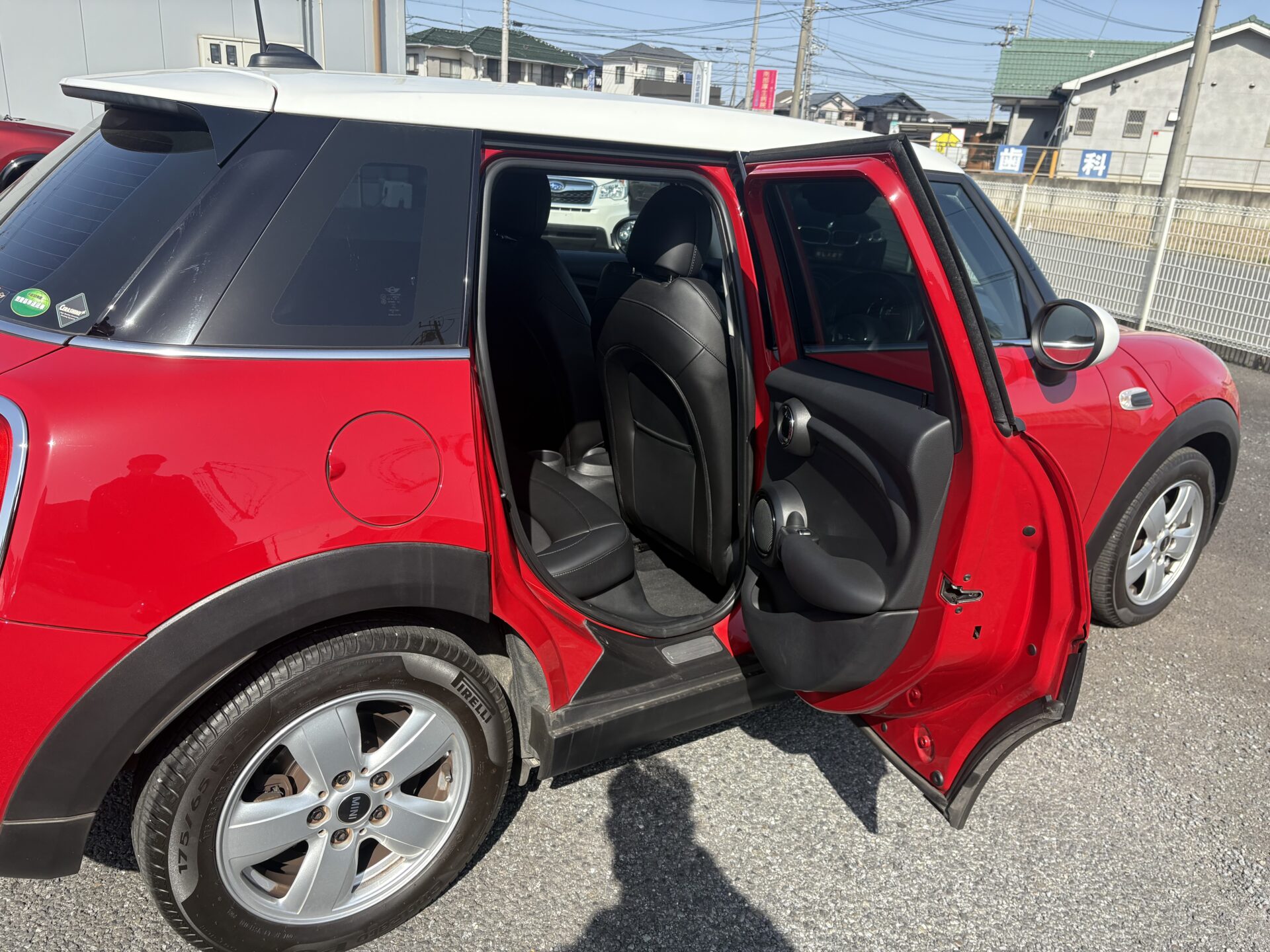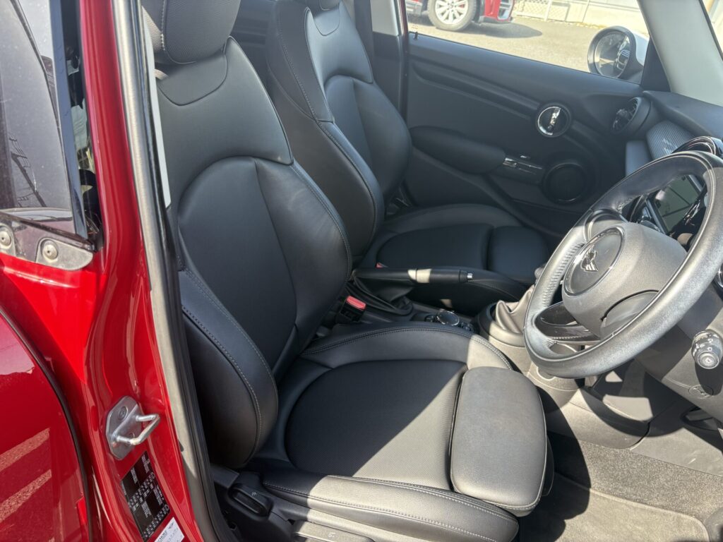 ミニ王道のチリレッドに内装はレザーシートを備えた