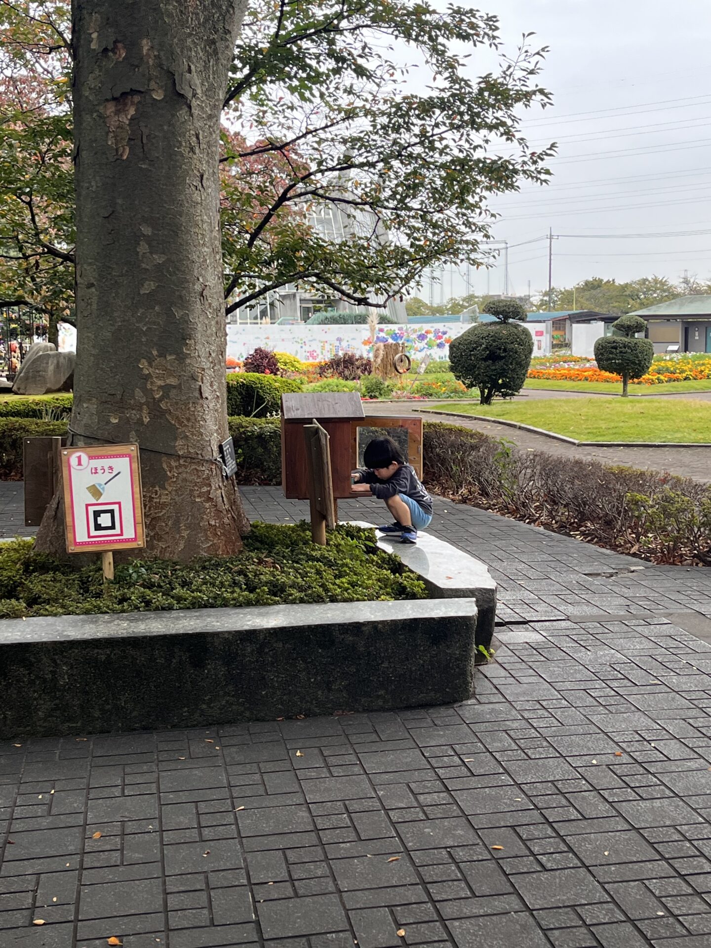 川口グリーンセンター内、スタンプラリーを黙々と頑張っている我が子♡
